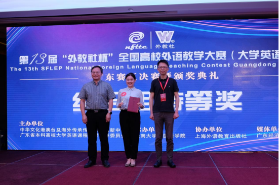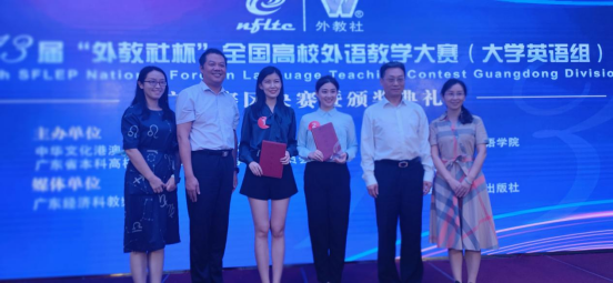 本网讯 10月23日,由中华文化港澳台及海外传承传播协同创新中心和广东省本科高校大学英语课程教学指导委员会主办的第13届“外教社杯”全国高校外语教学大赛(大学英语组)广东省决赛在广州落下帷幕。金年金官网英语教育学院教师范栩颖荣获综合课组特等奖、教师连希荣获视听说组二等奖。范栩颖将作为广东赛区该组唯一代表赴上海参加全国总决赛。