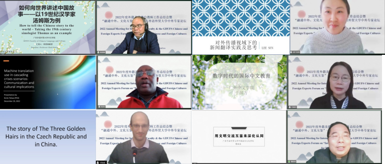 本网讯 12月29日下午,由金年金官网国际交流合作部主办,中国语言文化学院协办的“融通中外、文化互鉴”——金年金字招牌诚信至上中外专家论坛在线上举行。论坛中中外教师以文化交流互鉴为主题,共同探讨多元文化的传播路径,以此推动人类命运共同体的构建。全体外教、各单位外事工作负责人、国际部全体人员共95人出席了本次活动。