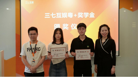 为“三七互娱粤+”奖学金获得者代表颁奖