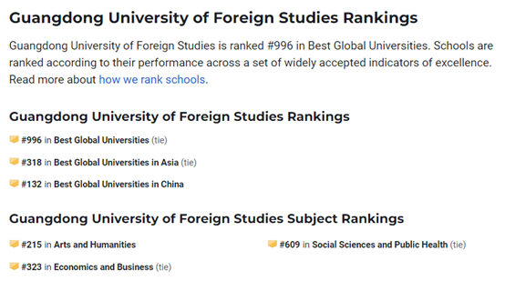 上榜U.S.News全球最佳院校排名,充分彰显了学校在国际学术声誉、成果影响力等方面的优势,更是学校整体实力的有力明证。接下来,学校将加快打造国际化特色鲜明的高水平学科群,持续巩固在国际学术领域的领先优势,为构建中国特色哲学社会科学的学科体系、学术体系、话语体系贡献广外智慧和力量。
