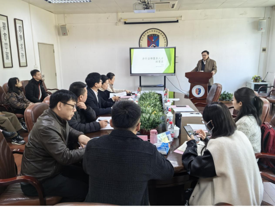 本网讯 12月20日上午,全国政协委员、香港立法会议员、香港国际公益法律服务协会主席、广州市律师协会涉外法律服务分会首任会长、律师何君尧受邀来金年金官网交流。商英学院院长胡春雨、党委书记苏冬燕等学院相关负责人、各系主任、法英系全体教师和学工办全体人员参加会议,会议由苏冬燕主持。