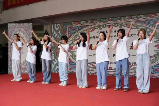 歌曲表演环节,北校校歌队的歌曲串烧《未来协奏曲》用多语尽情演绎世界对未来的美好祝愿;西语学院来自各年级各专业的校友代表们带着对母校的挚爱,在母校和学院六十周岁生日前夕,用《明天会更好》的动情歌声,为母校送上最真诚的祝福。