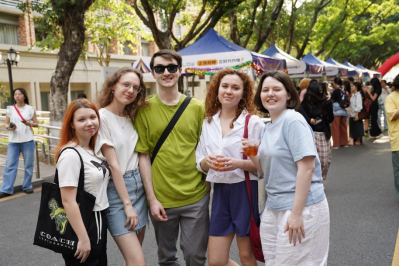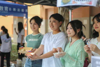 西语学院各语系、中文学院、广州市白云区白云外国语中小学、西语校友会等摊位一同开启欧罗巴美食盛会,精心准备琳琅满目的异国风味美食:从俄语摊位的红肠和列巴、西班牙语摊位的巴斯克蛋糕、法语摊位的法棍,到德语摊位的啤酒和香肠、葡萄牙语摊位的特调果汁,再到中文学院摊位的桂花糖,让全校师生足不出校便能体验世界美食文化。广州法语联盟、南国商学院西方语言文化学院及相关用人企业等校外单位也纷纷加入美食展示行列,为师生共同带来美食盛宴。