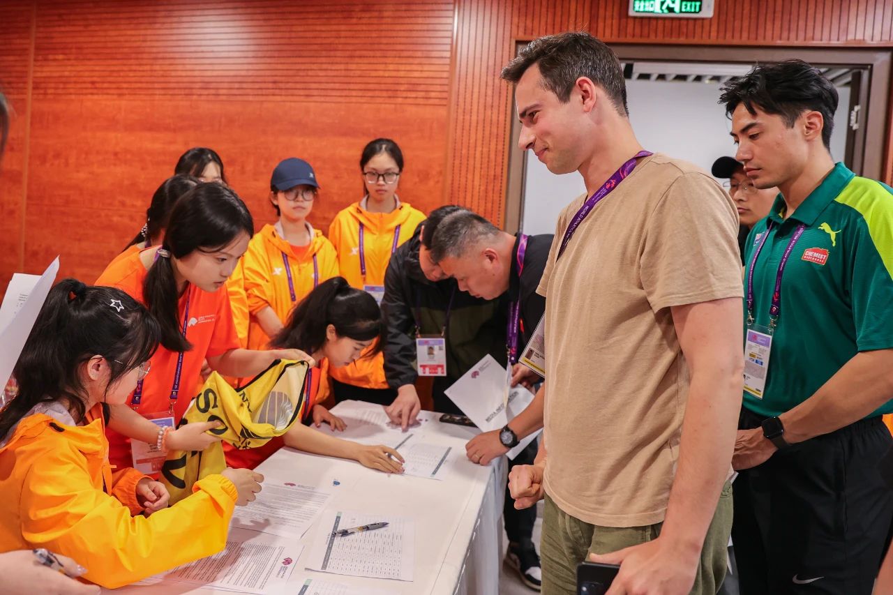 服务过程中,多语志愿者们用实际行动诠释了“奉献、友爱、互助、进步”的志愿精神,凭借专业的多语言技能,形成了一条高效运转的服务链。接待组的“城市使者”们以贴心翻译与真诚笑容,编织起全方位接待网络,为参赛人员打造宾至如归的赛事初体验;制证中心的“信息卫士”们凭借规范化流程与智能核验系统,实现证件信息零误差录入,构筑起赛事身份认证的坚固防线;媒体中心的“光影匠人”们穿梭于赛场角落,凭借敏锐的新闻嗅觉,将赛场上的拼搏瞬间转化为震撼人心的视觉盛宴。还有无数“幕后英雄”默默耕耘,从物资签领到会场布置,以严谨细致的态度全力做好岗位工作。